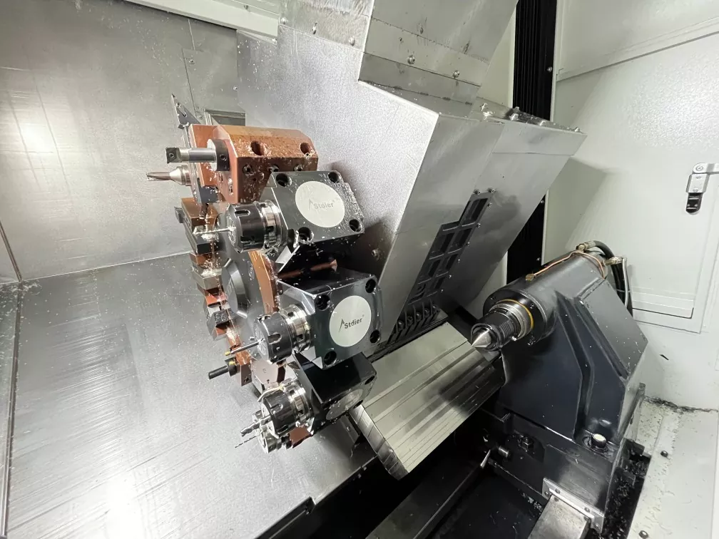 Má funkciu obrábania štyroch osí na otáčanie, mletie, vŕtanie, poklepanie atď. A môže dokončiť vŕtanie a poklepanie na konce častí hriadeľa.